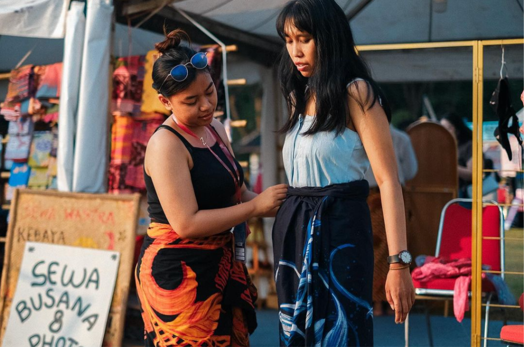 Participants enjoy the #BerkainKePJF campaign by wearing traditional Wastra while exploring walking tours around Prambanan, providing a rich and unique cultural experience at the festival.