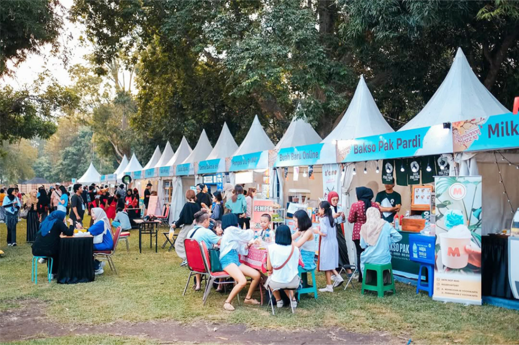 Pasaraya Prambanan Jazz offers a curated marketplace showcasing a wide variety of food and beverage options, enhancing the festival experience with culinary delights.