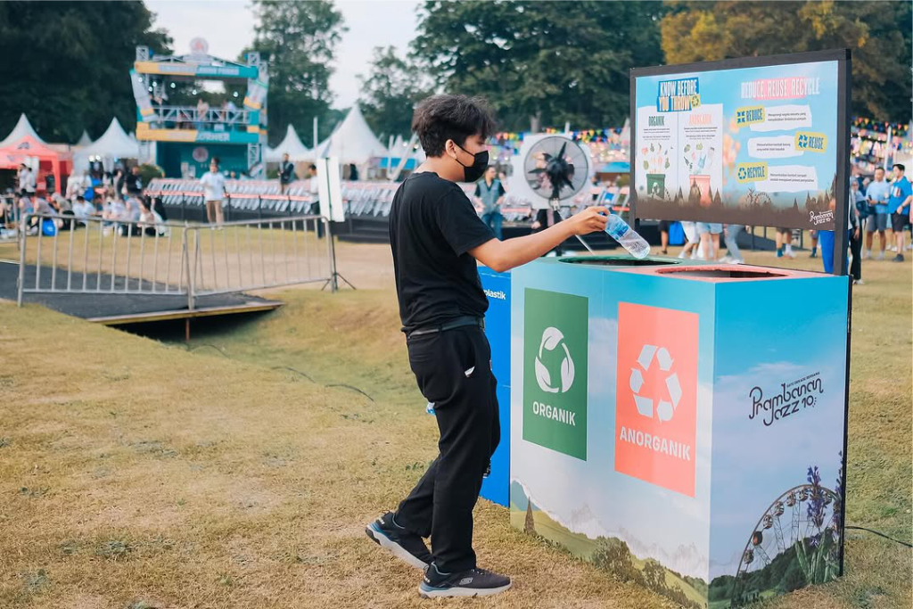 The Prambanan Jazz Festival emphasizes environmental sustainability with a robust waste management system, ensuring all waste is properly sorted, recycled, and responsibly managed.